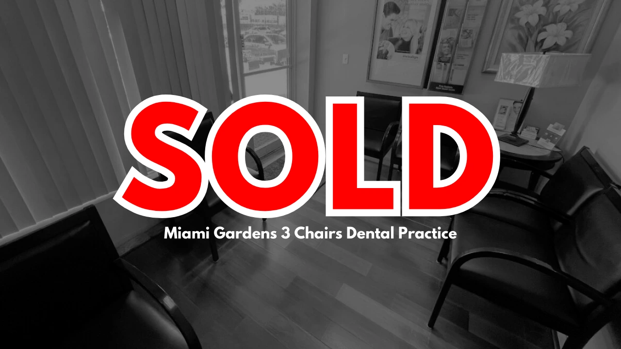 Miami Gardens 3 Chairs Dental Practice for Sale is located in a retail plaza facing North West 27th Avenue. The Miami Gardens Practice is owned by a retiring dentist who has been in the same location for over 33 years. Office opens 3 & 1/2 days a week. Almost all of Miami Gardens Dental Practice’s procedures are bread and butter procedures. About 25% of Miami Gardens’ patients have HMOs, and the remaining up to 100% are PPOs and FFSs. A truly turn-key office with staff willing to stay and Seller-Doctor able to stay as associate for 3 to 6 months transition if Buyer requested. For the right Buyer this office could represent a 3/4 million dollar office